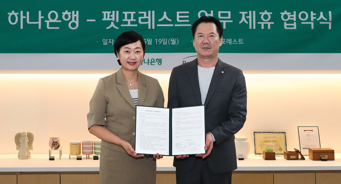 [시민일보 = 여영준 기자] 하나은행은 반려동물 장례서비스 제공 업체인 ㈜펫포레스트와 수신 VIP 손님 지원을 위한 업무협약을 체결했다고 20일 밝혔다.