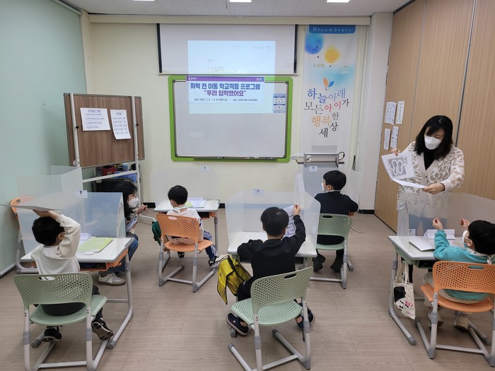 교육은 ▲모의 학교체험 ▲읽기학습으로 구성됐다. ‘모의 학교체험’은 자기물건에 이름쓰기, 학급규칙 정하기, 시계보기, 경청하기 훈련, 모둠활동 등으로 공동체 생활에 적응할 수 있는 생활습관 교육에 중점을 두었다. ‘읽기학습’은 바른자세로 읽고 쓰기부터 자음과 모음 이해하기, 자석으로 글자 만들기, 그림일기 쓰기 등 학습에 필요한 기초교육을 받는다. 교육은 매회 2시간 씩 진행된다.
