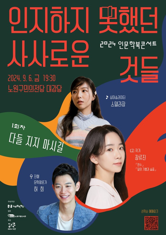 [시민일보 = 이대우 기자] 서울 노원구(구청장 오승록)가 노원구민의전당 대강당에서 인문학 북콘서트 개최 4주년을 기념해 총 2회에 걸쳐 북토크와 공연이 결합된 인문학 북콘서트 ‘인지하지 못했던 사사로운 것들’을 개최한다.