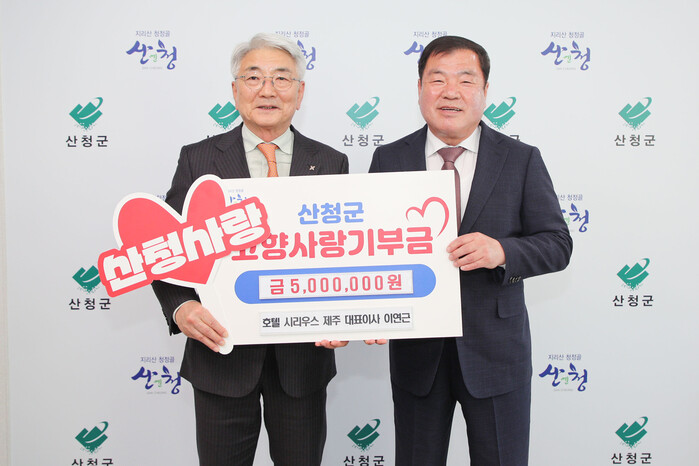 [산청=이영수 기자] 경남 산청군은 이연근 호텔시리우스 대표가 고향사랑기부금 500만원(개인 연간 최고 기부액)을 기탁했다고 25일 밝혔다.