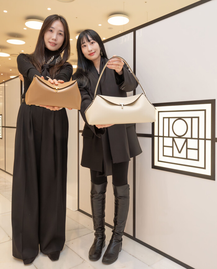 | ▲ 서울 영등포구에 위치한 더현대 서울 '토템(TOTEME)' 팝업스토어에서 한섬 직원들이 토템의 인기 가방 컬렉션 '티락(T-LOCK)' 신상품을 소개하고 있는 모습. (사진=한섬 제공) |