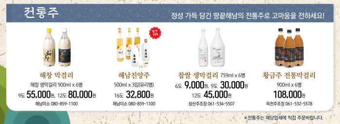 또한 전남도 무형문화재로 지정돼 있는 해남 진양주도 추석 선물용 세트를 판매한다.