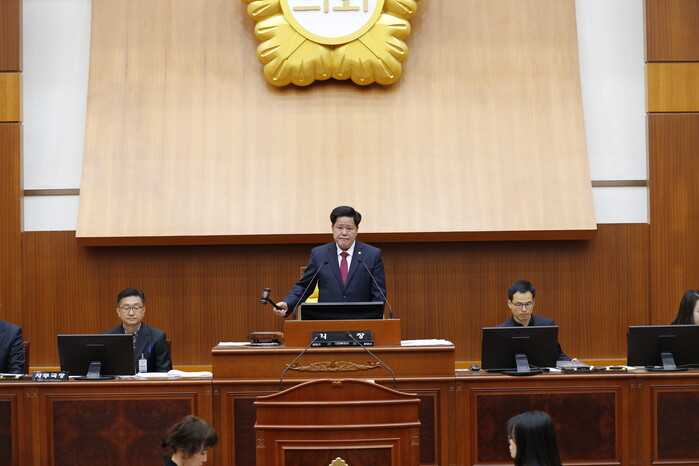 안병건 의장은 개회사에서 “이번 정례회는 올해를 마무리하고 새로운 미래를 준비하는 회기인 만큼 마지막까지 최선을 다해주시길 바란다. 내년도 예산이 적재적소에 투입될 수 있도록 심도 있고 꼼꼼히 심사해 주시길 바란다”고 말하며, 취약계층에 대한 복지를 당부했다.