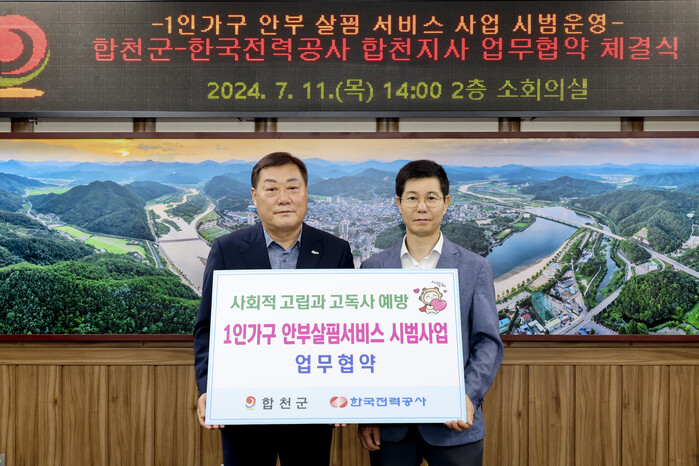 김윤철 합천군수는 “사회적 변화에 따라 고립 위험 가구가 증가하는 만큼 안부살핌 서비스를 통해 위기상황에 신속히 대응할 수 있는 사회안전망을 구축할 예정이며, 앞으로도 복지사각지대 발굴 및 고독사 예방을 위해 노력하겠다”고 말했다.