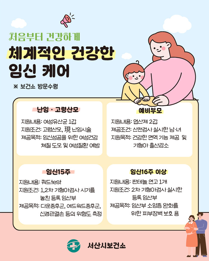 [서산=최복규 기자] 충남 서산시가 예비 산모부터 임산부까지 임신 단계별 건강 관리를 강화한다.