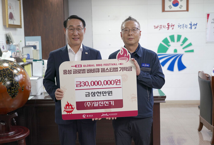 [홍성=최복규 기자] 충남 홍성군은 최근 일진전기(주)가 군 대표 축제인 ‘2025 홍성글로벌바비큐페스티벌’의 성공 개최를 기원하며 기부금 3000만원을 전달했다고 30일 밝혔다.