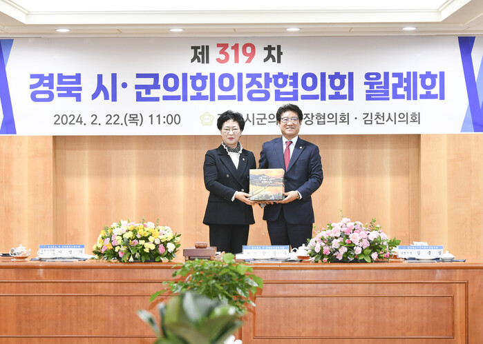 [김천=박병상 기자] 경북 김천시의회(의장 이명기)는 지난 22일 김천시문화예술회관에서 경북시군의회의장협의회 제319차 정기 월례회를 개최했다.