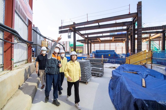 박희영 서울 용산구청장이 최근 한강로동에 위치한 도시정비형 재개발 사업현장 국제빌딩 제5구역, 제2-1구역 등 지역내 대형 공사장 2곳을 방문해 현장을 점검했다. 사진은 박 구청장(오른쪽)이 국제빌딩주변 제5구역 공사현장 안전관리 실태를 확인하고 있는 모습. (사진제공=용산구청)