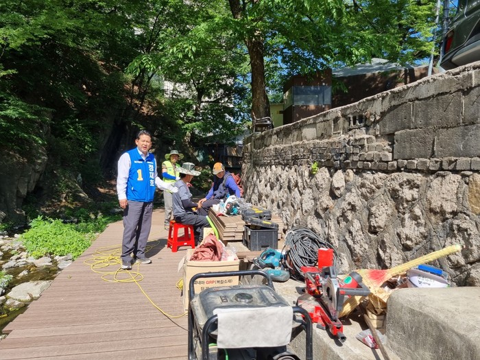 [시민일보 = 이대우 기자] 정재호 서울 종로구의회 행정문화위원장이 최근 홍제천 산책로 조성사업 현장을 찾아 의정활동을 펼쳤다.