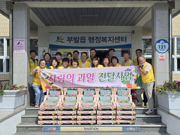 경기 이천시 부발읍 지역사회보장협의체가 31일 지역내 요보호가정 50가구에 신선한 제철 과일과 채소로 구성된 ‘사랑의 과일 꾸러미’를 전달했다. 사진은 전달식에서 관계자들이 기념 촬영을 하는 모습. (사진=이천시청 제공)