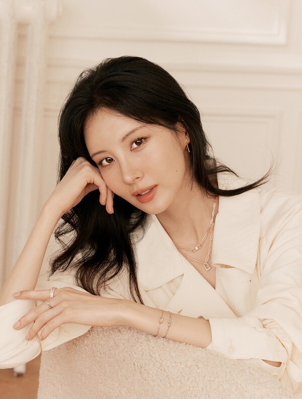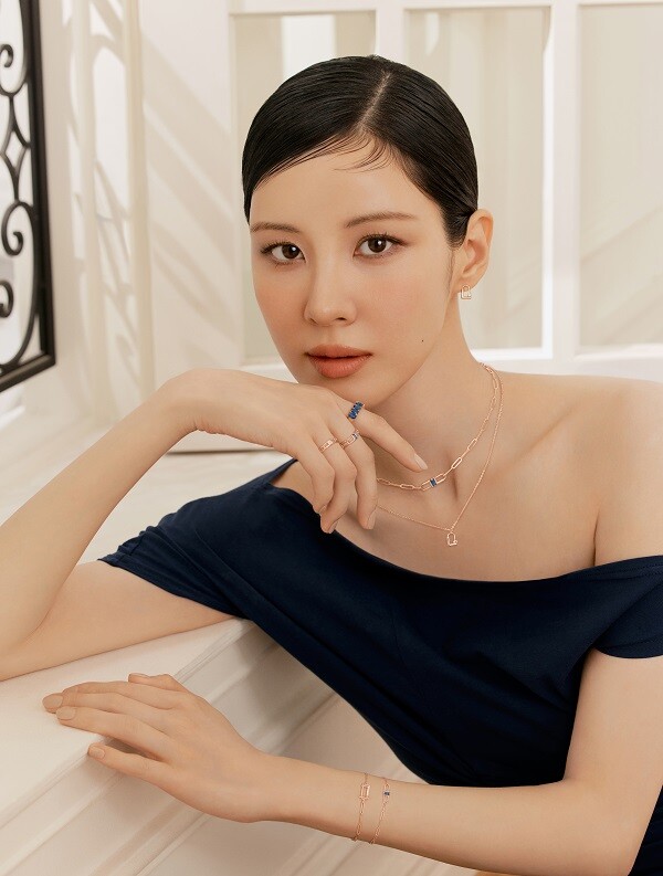 공개된 캠페인 속 서현은 어깨를 드러낸 고혹적인 무드의 네이비 드레스를 입고 ‘럭키L 컬렉션’의 미드나이트 블루 컬러 스톤이 세팅된 주얼리를 믹스 매치해 우아하고 세련된 가을룩을 선보였다.