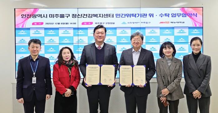[인천=문찬식 기자] 인천 미추홀구(구청장 이영훈)는 지난 8일 구청장실에서 재능대학교 산학협력단(단장 이주미)과 정신건강복지센터 위탁 운영 협약을 체결했다.