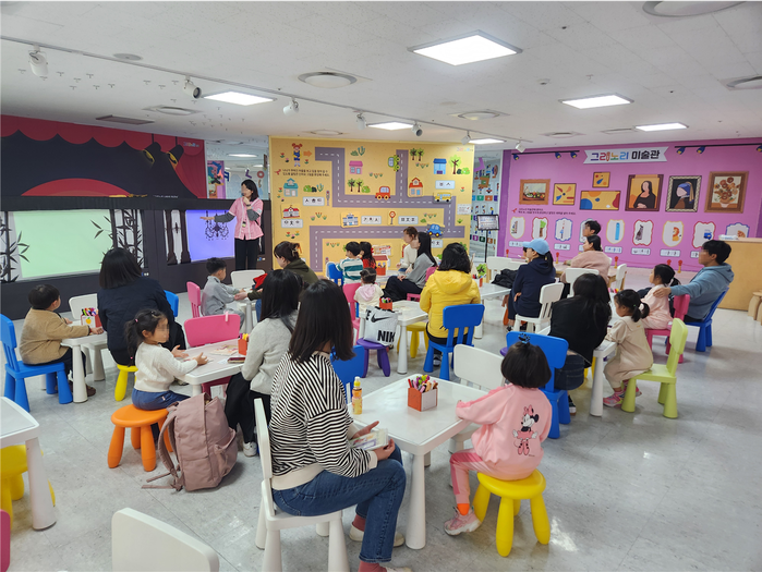 [용인=오왕석 기자] 용인문화재단(이사장 이상일)은 용인어린이상상의숲을 방문하는 영·유아를 위해 미술과 인문학이 결합된 융복합 프로그램인 미술놀이터 ‘그리노리 한글’을 ㈜엠씨랩의 예술 인문 교육 브랜드 ‘모나르떼’와 공동 기획하여 올해 4월부터 운영하기 시작했다.