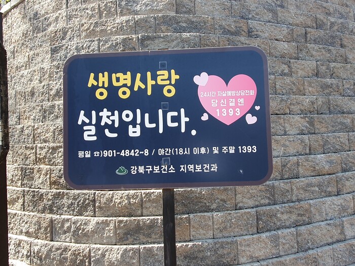 이순희 구청장은 “구는 이번 정비를 통해 생명이 무엇보다 소중하다는 인식이 우리 사회에 널리 퍼지기를 기대한다”며 “강북구는 앞으로도 생명존중 가치를 실현하고 자살예방에 노력하겠다”고 말했다.