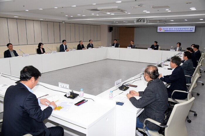 | ▲ 김광진 광주광역시 문화경제부시장이 30일 시청 총회의실에서 광주상공회의소, 중소벤처기업진흥공단 광주지역본부 등 16개 단체 및 기관을 대상으로 ‘2023년 제3차 민생경제대책본부 회의'를 주재한 가운데 중소기업 부담 경감을 위한 대응책을 논의하고 있다. / 광주광역시 제공 |
