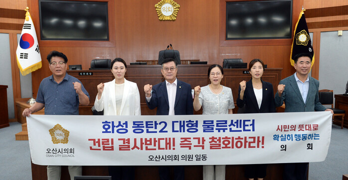 경기 오산시의회가 최근 본회의장에서 긴급 성명서를 발표하고 화성 동탄2 유통3부지 물류센터 건립과 관련한 경기도 교통영향평가 재심의 결과에 대해 강한 유감을 표했다.