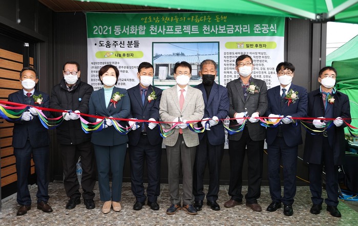 지난 30일 강진군 작천면에서 동서화합 천사 프로젝트 추진위원, 전남도·강진군 관계자, 초록우산 어린이재단 등 80여명이 참석한 가운데 '천사보금자리 6호' 준공식을 개최했다.
