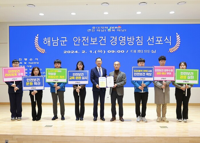 명현관 해남군수는 “군민과 종사자의 생명을 보호하고 안전을 지키는 것이 안전보건 경영의 최우선 과제”라며 “중대재해 없는 안전하고 행복한 해남을 만들기 위해 최선을 다하겠다.”고 전했다.