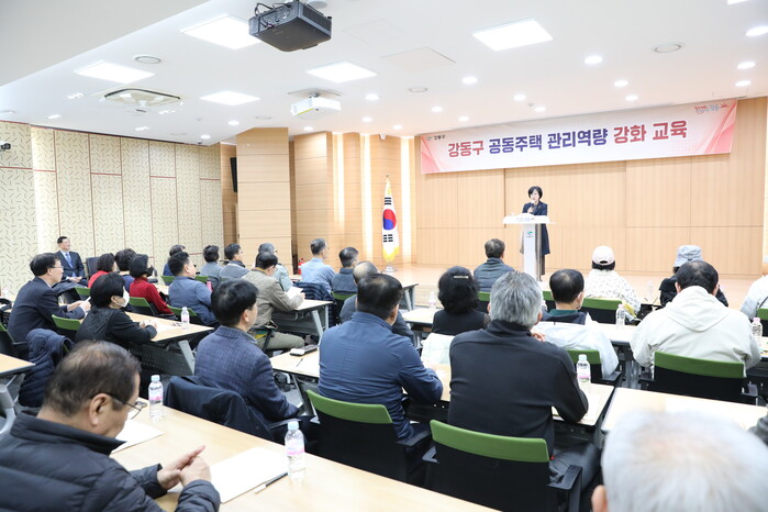 [시민일보 = 이대우 기자] 강동구(구청장 이수희)는 지난 14일 오후 2시, 강동구청 대강당에서 관내 공동주택 입주자대표회의 구성원 등을 대상으로 ‘2024년 공동주택 관리역량 강화 교육’을 실시했다고 밝혔다.