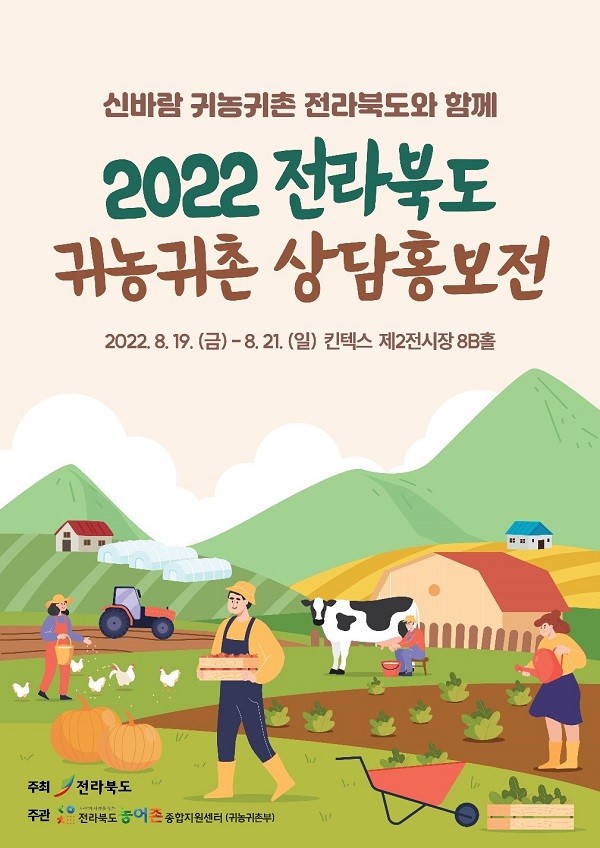 전라북도가 주최하고 전북농어촌종합지원센터(귀농귀촌부)가 주관하는 이번 행사는 전라북도 13개 시·군이 참여하여 귀농.귀촌 관심 대상자들에게 시.군의 정책 설명과 전라북도 귀농·귀촌 정책에 대해서 대면과 상담을 받을 수 있다. 또한 직접 행사장을 찾지 못하는 분들을 위한 비대면(온라인) 상담 부스를 마련해 사전 예약 신청을 받아 3일 동안 온라인 1:1 상담도 받을 수 있다. 13개 시군 1:1 온라인 상담과 체험 접수는 홈페이지에서 신청하면 된다.