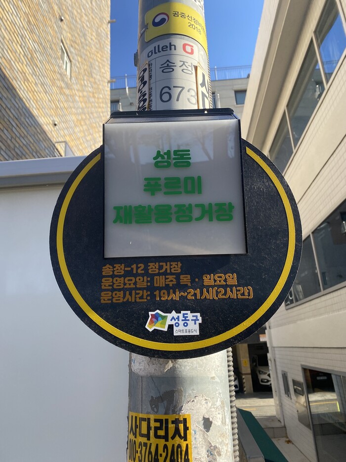 | ▲ 지난해 ‘스마트 생활밀착정책 아이디어’ 공모를 통해 ‘성동 푸르미 재활용정거장 안내등’이 설치된 모습 (사진=성동구청 제공) |