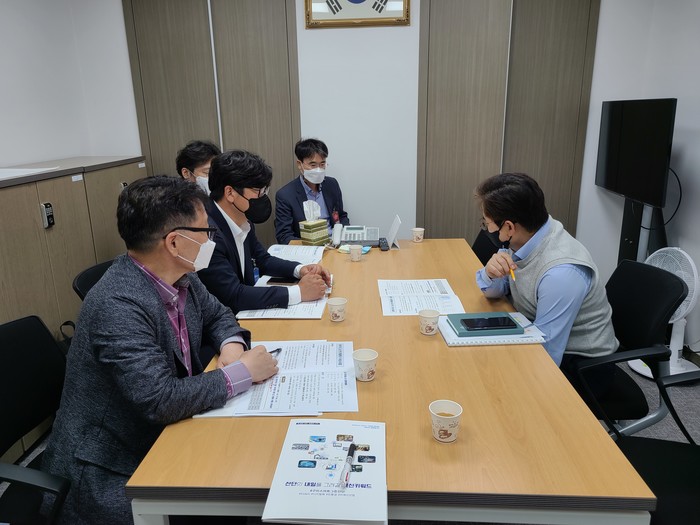경북 구미시가 지난 28일 경북도와 함께 국회를 방문해 구자근·김영식 의원과 산단 대개조사업 등 주요 현안사업에 대해 논의하고 2023년 신규사업 국비 지원을 건의했다. 사진은 이날 시 관계자들이 국회를 방문해 주요 현안사업에 대해 논의하고 있는 모습. (사진제공=구미시청)