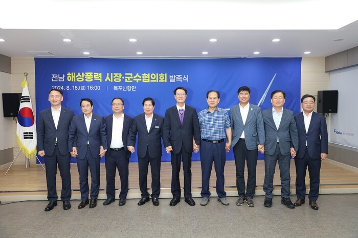 [신안=황승순 기자]전남 해상풍력 시장·군수협의회(이하 협의회) 발족식이 8월 16일 지자체장, 관계 공무원 등 50여 명이 참석한 가운데 목포신항만㈜ 회의실에서 개최됐다.