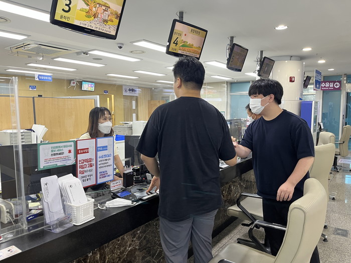 경기 양주시 양주2동 행정복지센터는 최근 고읍지구대와 함께 민원인의 폭언·폭행 등 비상상황 발생시 대응할 수 있도록 자체 모의훈련을 실시했다. 사진은 이날 직원들이 비상상황 발생 대응 모의훈련을 하고 있는 모습. (사진제공=양주시청)