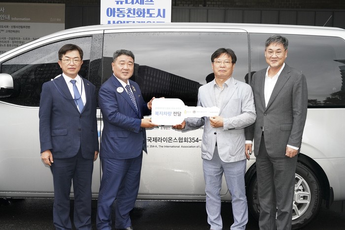 서울 종로구는 지난 8일 국제라이온스협회 354-A지구로부터 지역내 어려운 주민들을 위한 9인승 차량(현대 스타리아)을 전달받았다. 수혜기관인 종로종합사회복지관은는 보호서비스 대상자의 사례관리를 위한 가정방문 등에 기증차량을 사용할 예정이다. 사진은 복지차량 전달식에서 정문헌 구청장(오른쪽)이 관계자들과 기념촬영을 하는 모습.(사진제공=종로구청)