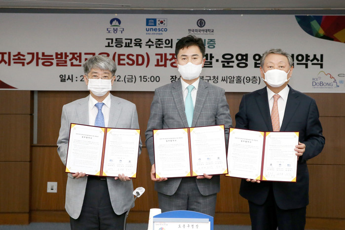 [시민일보 = 박준우 기자] 도봉구(구청장 오언석)가 최근 구청 씨앗홀에서 유네스코한국위원회, 한국외국어대학교와 함께 '공동 인증 지속가능발전(ESD) 과정·개발 운영' 업무협약을 체결했다고 17일 밝혔다.