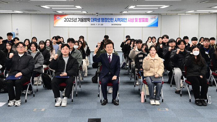 진주시는 31일 시청 3층 문화강좌실에서 2025년 겨울방학 행정인턴 사업에 참여한 학생 60명을 대상으로 우수시책 제안자 시상식과 발표회를 개최했다.