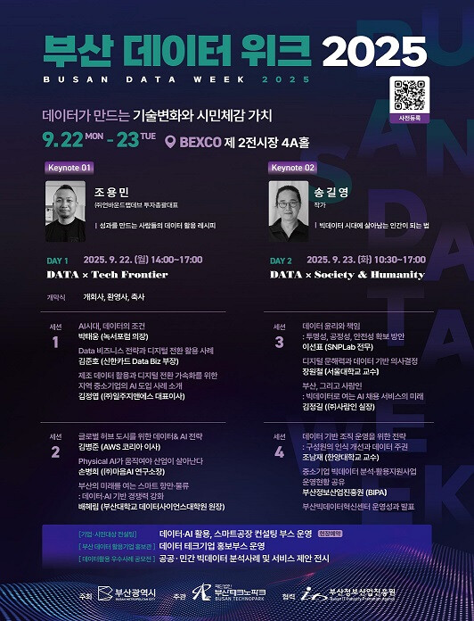 이와 함께 부산 지역 내외 데이터 활용기업들이 참여하는 부스가 운영돼 디지털 전환(DX) 기반의 제품과 해법을 전시하고, 데이터 활용·인공지능 기술 컨설팅도 제공한다.