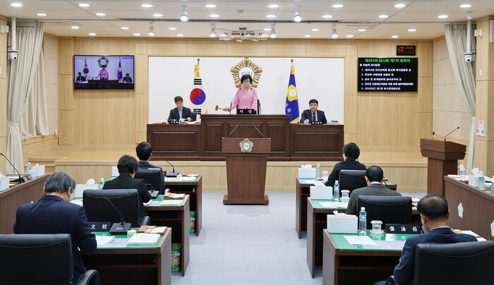 박금례 의장은 개회사를 통해 “최근 진도군은 전복, 김, 대파, 봄동 등 농수산물 가격 하락, 물가 인상 등으로 인해 많은 군민이 어려움을 겪고 있어 진도군과 진도군의회는 군민들에 대한 실질적인 지원을 통하여 민생경제를 회복하기 위해 신속히 원포인트 임시회를 개회하게 됐다”라고 말했다.
