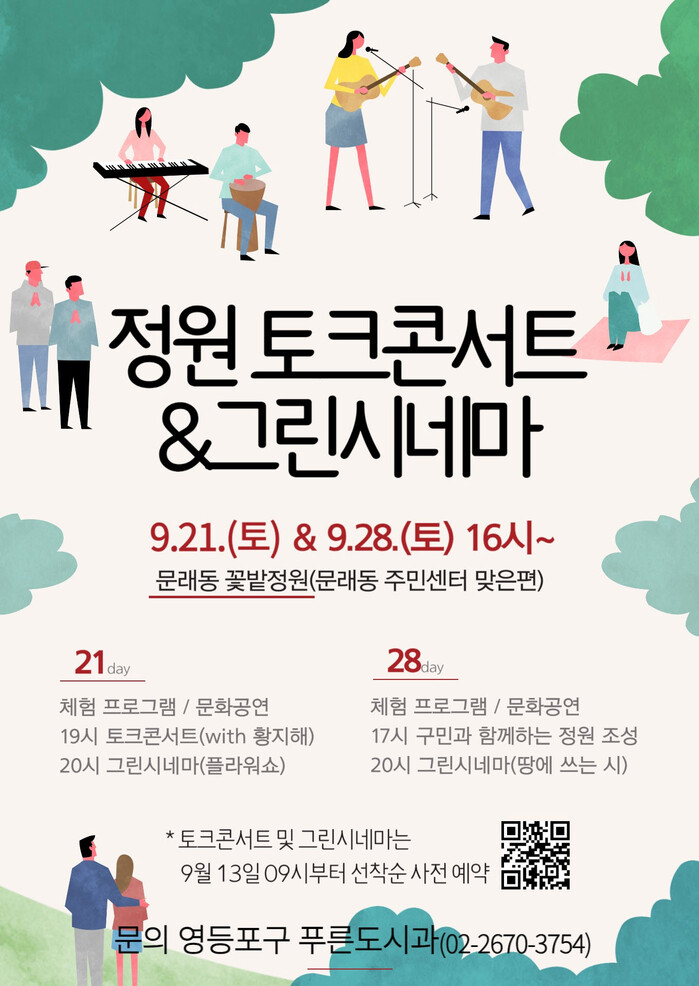 [시민일보 = 여영준 기자] 서울 영등포구(구청장 최호권)가 오는 21일, 28일 이틀 동안 ‘문래동 꽃밭정원’에서 ‘함께 하는 정원, 일상이 정원이 된다’를 주제로 <정원 토크콘서트&그린시네마>를 개최한다고 밝혔다.