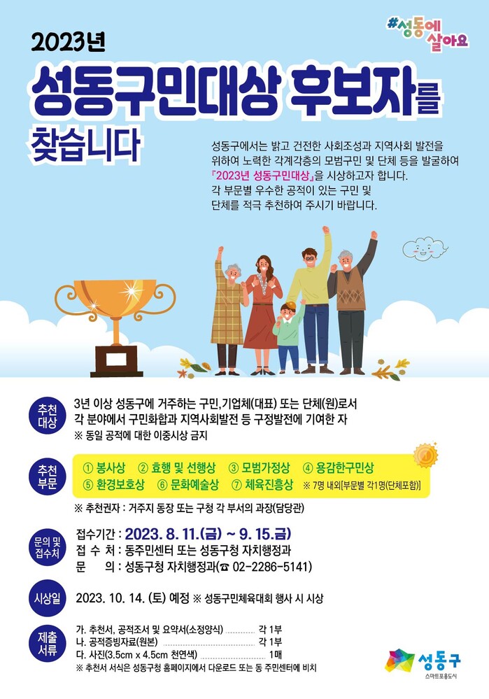 | ▲ 제26회 성동구민대상 후보자 접수 안내문. (사진=성동구청 제공) |