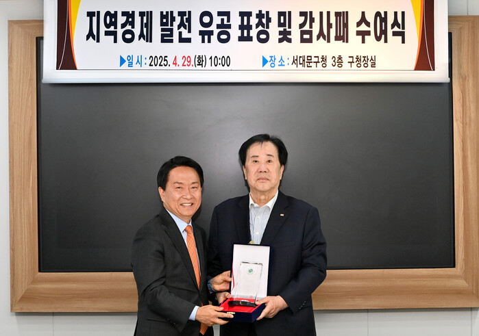 [시민일보 = 이대우 기자] 서울 서대문구(구청장 이성헌)가 최근 구청장실에서 신촌·이대 지역 환경 개선과 상권 활성화에 기여한 SM그룹에 표창장과 감사패를 수여했다.