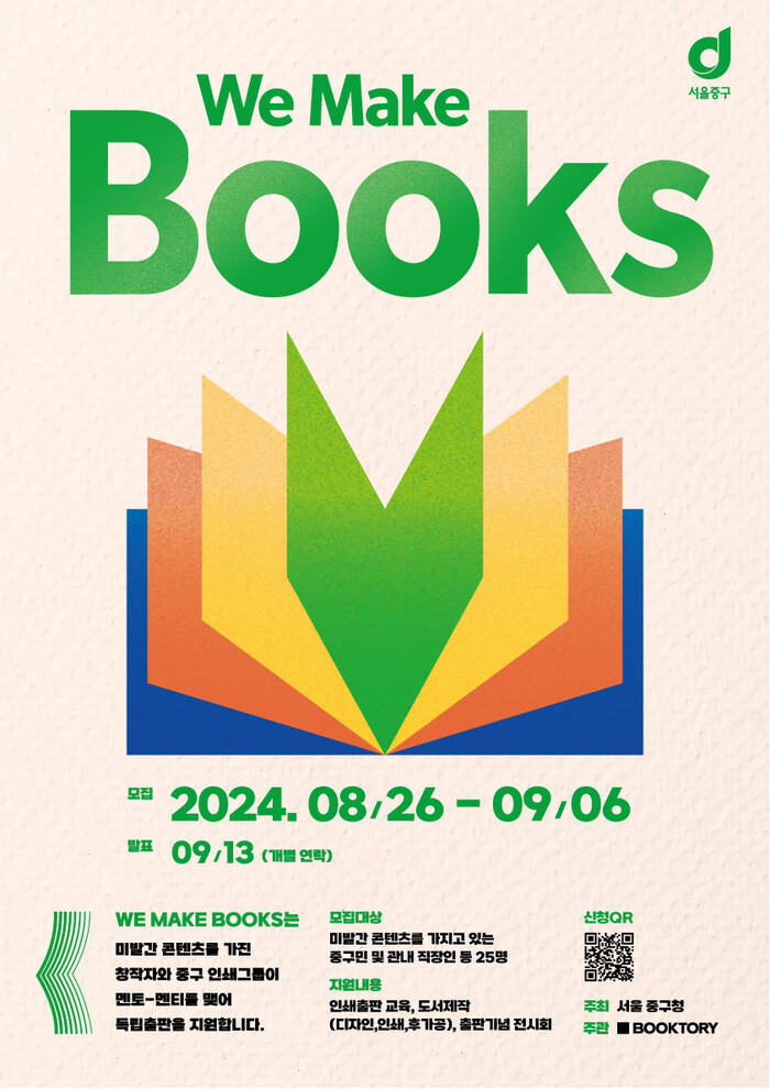 중구는 인쇄출판업 중심지로서의 기술과 경험을 바탕으로 예비작가의 독립출판 지원 프로그램 ‘WE MAKE BOOKS’를 통해 나만의 도서를 제작해 볼 기회를 제공하는 한편 도심산업 활성화를 지원한다.