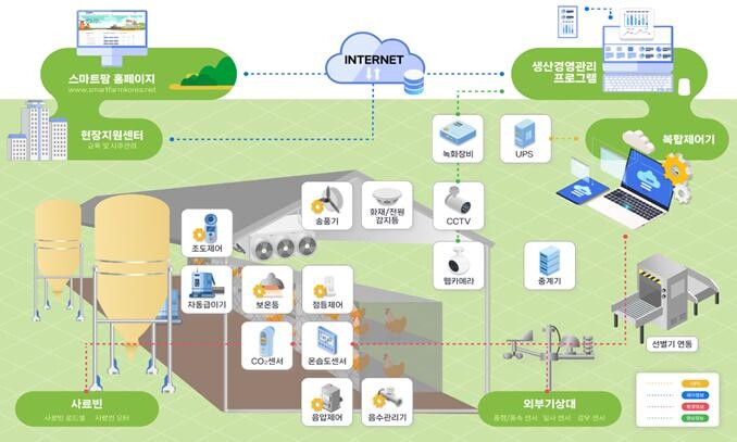 스마트축사는 축사에 정보통신기술(ICT)을 융복합한 것으로 자동으로 축사 온도와 습도를 유지하고 물과 사료를 정해진 시간에 배급해 효율적인 축사ㆍ가축 관리는 물론, 실시간 가축 건강 상태 파악과 악취측정으로 신속한 질병 관리와 환경오염 저감이 가능하다.