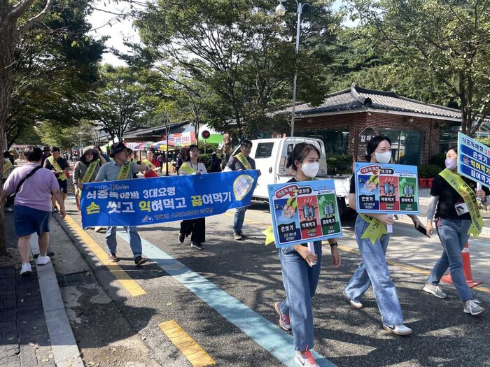 이날 캠페인에는 스포츠산업과 위생팀과 (사)한국외식업중앙회영광군지부, 영광군어린이급식관리지원센터가 공동으로 참여해 예방수칙이 담긴 현수막과 피켓을 들고 축제장 주변을 돌며 위생용품을 배부했다.