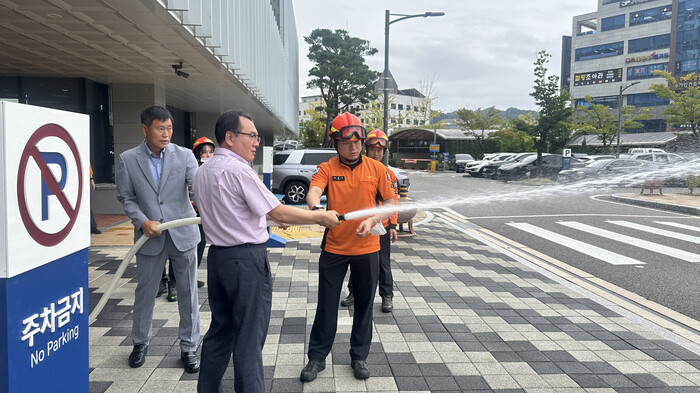 특히 예산소방서 금오119센터 대원들이 참여해 소화기·소화전 사용법과 대피 요령을 직접 지도하고, 군청 직원들이 적극적으로 훈련에 참여해 화재 대응 역량을 한층 강화하는 계기가 됐다.
