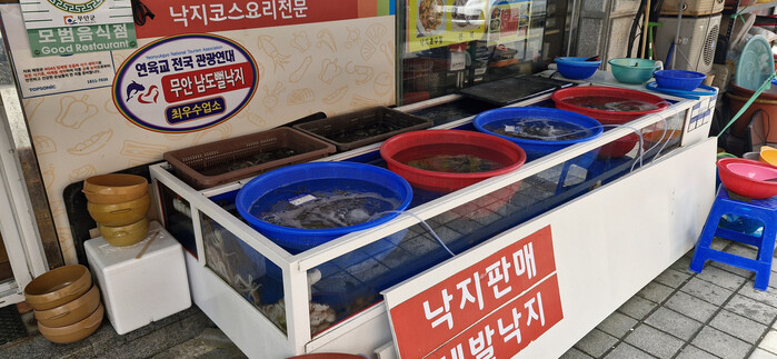 | ▲ 제3회 무안갯벌축제를 앞두고 소님 맞이에 기다리는 무안갯벌 낙지 수족관 모습(사진=황승순 기자) |