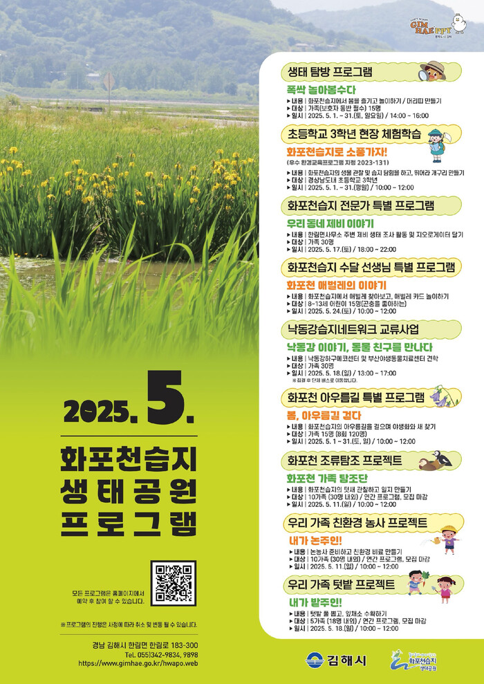 [김해=최성일 기자] 김해시 화포천습지 생태학습관이 가정의 달 5월을 맞아 가족 단위 시민들과 학생들을 위한 다채로운 생태체험과 교육 프로그램을 운영한다고 23일 밝혔다.