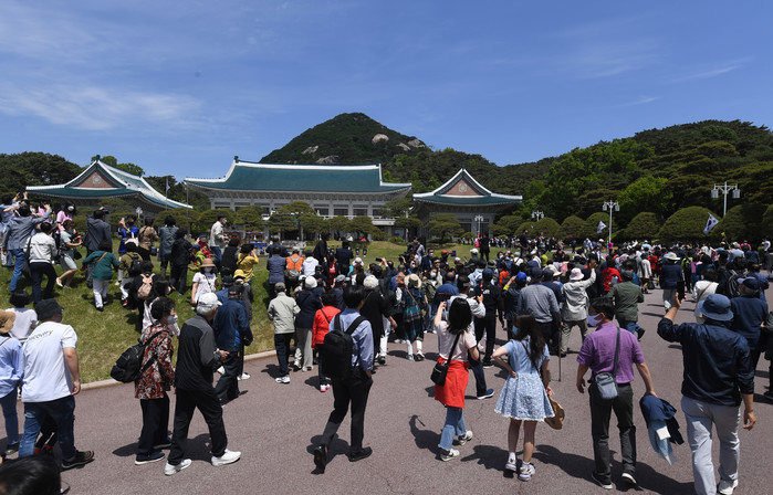 제20대 윤석열 대통령 취임일인 10일 서울 종로구 청와대에 시민들이 입장하고 있다.