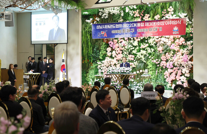 [성남=오왕석 기자] 이덕수 의장을 비롯한 성남시의회 의원들이 15일 라온제나 분당에서 개최된 성남시태권도협회장 이취임식에 참석했다.
