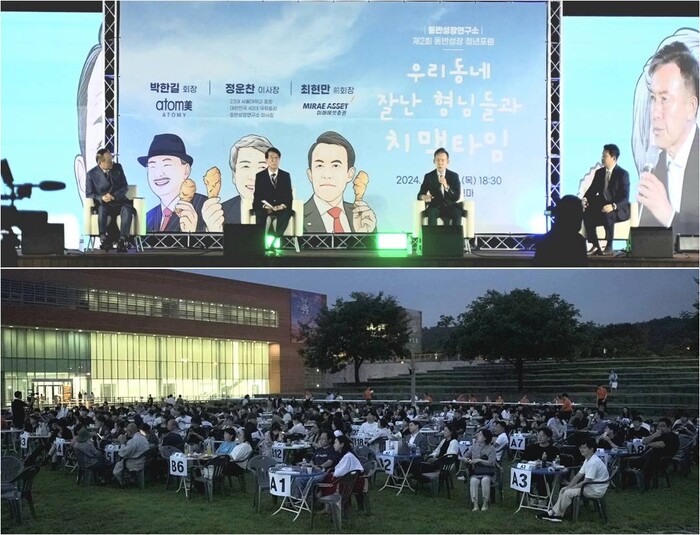 동반성장연구소는 지난 12일 공주시 아트센터고마 야외광장에서 한국 경제계 대표 인사들과 청년들이 솔직담백하게 대화하는 소통의 장을 마련했다.