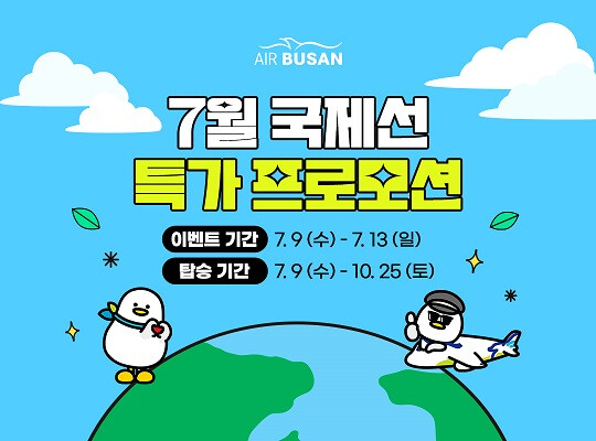 이번 프로모션은 이달 9일 오전 11시부터 13일까지 5일간 진행되며, 에어부산 홈페이지 및 모바일 웹·앱을 통해 구매할 수 있다. 프로모션 항공권으로 탑승 가능한 기간은 이달 9일부터 10월 25일까지 기간 내 노선별로 상이하다.