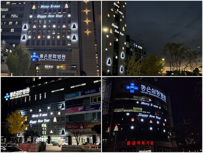 좋은병원들은 병원 외벽과 로비, 병동 등에 크리스마스트리를 비롯한 다양한 장식물을 설치해 환자와 보호자들에게 따뜻한 연말 분위기를 선사하고 있다. 특히 병동과 대기공간에 마련된 ‘소원트리’는 환자와 보호자들이 새해 희망을 적어 걸 수 있도록 해 큰 호응을 얻고 있다.