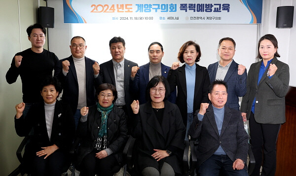 [인천=김형만 기자] 인천시 계양구의회는 11월 8일과 18일, 양일간 의회 세미나실에서 의원들을 대상으로 부패방지 및 폭력예방 교육을 실시했다고 밝혔다.