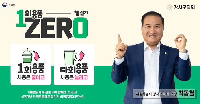 [시민일보 = 홍덕표 기자] 최동철 서울 강서구의장이 최근 '1회용품 제로(1 zer0) 챌린지'에 동참했다.
