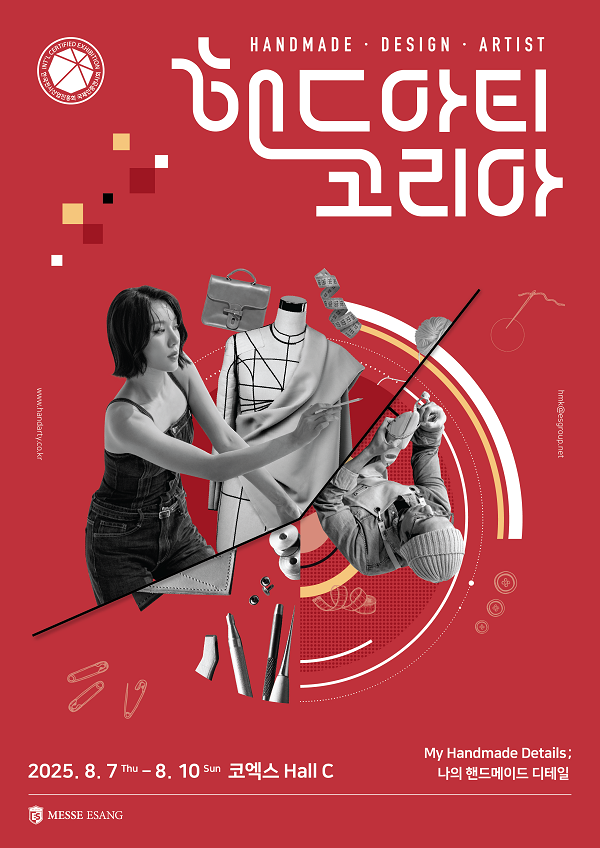 국내 대표 핸드메이드 전시회 ‘2025 핸드아티코리아’가 오는 8월 7일부터 10일까지 서울 코엑스 C홀에서 개최된다. 올해 전시회 주제는 ‘My Handmade Details; 나의 핸드메이드 디테일’로, 창작자의 손끝에서 시작된 디테일한 감성과 이야기를 중심으로 전시가 구성된다.